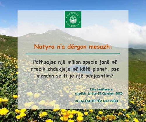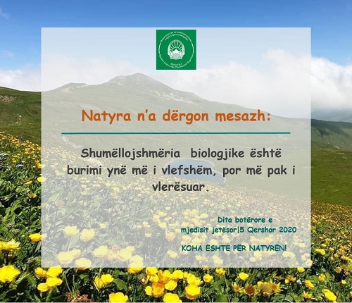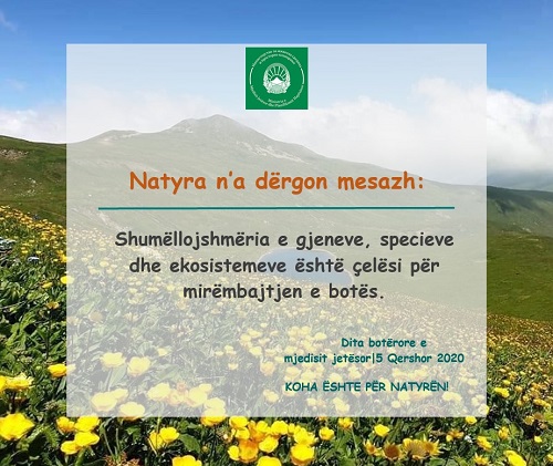 5 qershori është Dita Botërore e Mjedisit dhe këtë vit komuniteti ndërkombëtar e dedikoi në mbrojtjen e biodiversitetit duke bërë thirrje për veprim kundër humbjes së përshpejtuar të specieve dhe degradimit të botës natyrore. Themi, “Është koha për natyrën” sepse një milion specie bimore dhe shtazore po zhduken, kryesisht si rezultat i veprimtarisë njerëzore. Diversiteti biologjik luan një rol kryesor në ruajtjen e funksionalitetit të ekosistemeve, duke siguruar kështu mallra dhe shërbime specifike të rëndësishme për njerëzit. Sigurimi i ushqimit të shëndetshëm, ujit, ilaçeve dhe ajrit të pastër janë vetëm disa nga shërbimet themelore, të njohura ndoshta për secilin person, që marrim nga ekosistemet. Vetë proceset që zhvillohen në to kanë një efekt të dobishëm për njerëzit – e mbrojnë nga përmbytjet, erozioni, ndryshimet klimatike. Më në fund, diçka e paçmueshme që i ofrohet njerëzimit, dhe nuk mund të ekzistojë nëse funksionimi normal i ekosistemeve prishet nga ndonjë faktor, është mundësia për të shijuar dhe rikrijuar natyrën. Të gjitha ndryshimet që ndikojnë në diversitetin biologjik ndikojnë automatikisht në funksionalitetin e ekosistemeve, kështu edhe ndaj mirëqenies njerëzore.