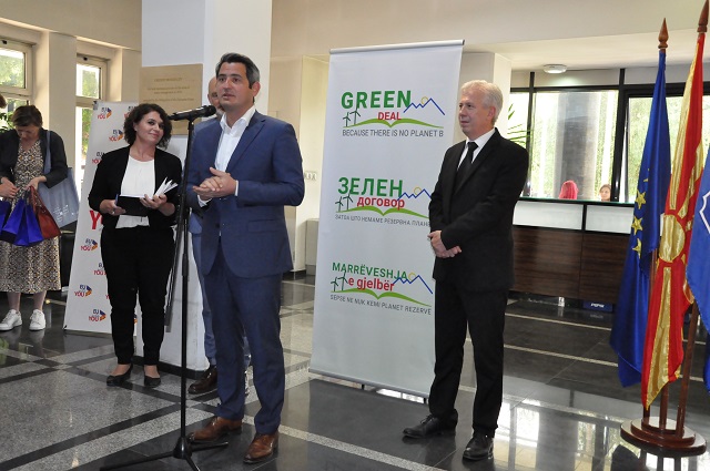 Ministri i Mjedisit Jetësor dhe Planifikimit Hapësinor Naser Nuredini, së bashku me zëvendësministrin e vetëqeverisjes lokale, Zoran Dimitrovski, sot në Prilep, morën pjesë në ngjarjen ku shefi i Delegacionit Evropian në Maqedoninë e Veriut, shkelqësia e tij, David Geer, kryetarit të komunës së Prilepit, Borçe Jovçevski, ia dhuroi çmimin “Komuna më e gjelbër 2021”.