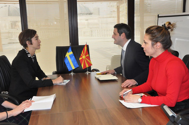 (04.12..2019г.) Министерот за животна средина и просторно планирање Насер Нуредини денес се сретна со амбасадорката на Кралство Шведска Кристин Форсгрен Бенгтсон. На средбата се разговараше на повеќе теми. Министерот Нуредини се заблагодари за досегашната добра соработка, ги презентираше приоритетите на Министерството за животна средина и просторно планирање и истакна дека шведското искуство би ни било од особена корист при реализирање на приоритетите на државата во животната средина.